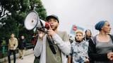 The protest starts off peacefully